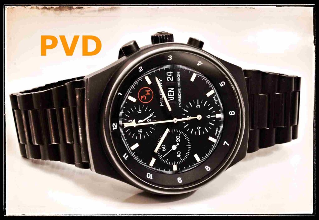 PVD is a broader category that refers to a process in which a thin film of material—often titanium nitride or similar compounds—is deposited onto the surface under vacuum. It offers improved wear and corrosion resistance compared to bare metal, but it can be susceptible to scratching over time.