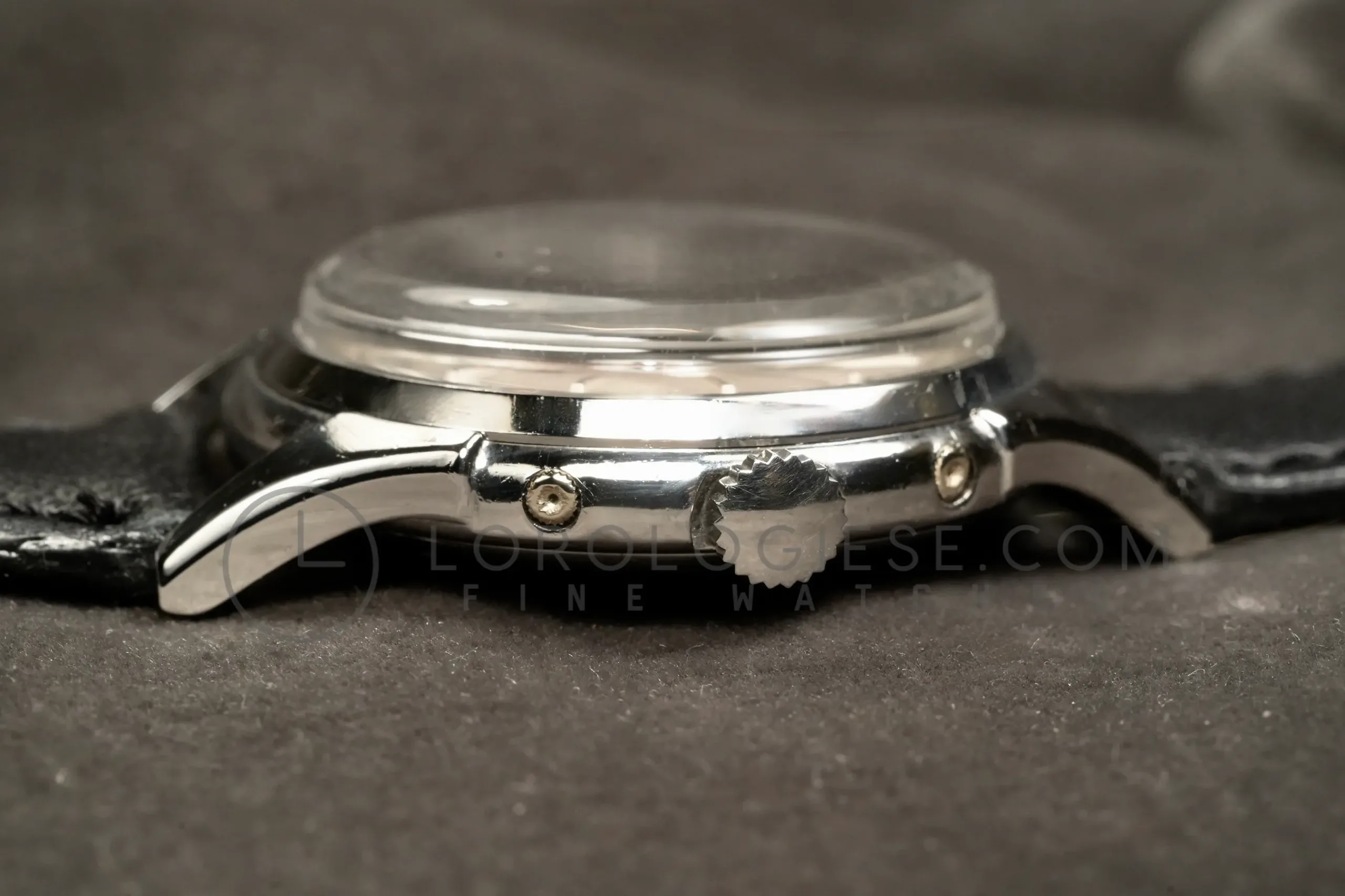 The watch is fitted with a new unbranded leather strap. Serviced in-house and in reliable working order, this timepiece is offered with a six-month guarantee and certificate of originality. Worldwide shipping is available. Please contact us for further details or purchase arrangements.