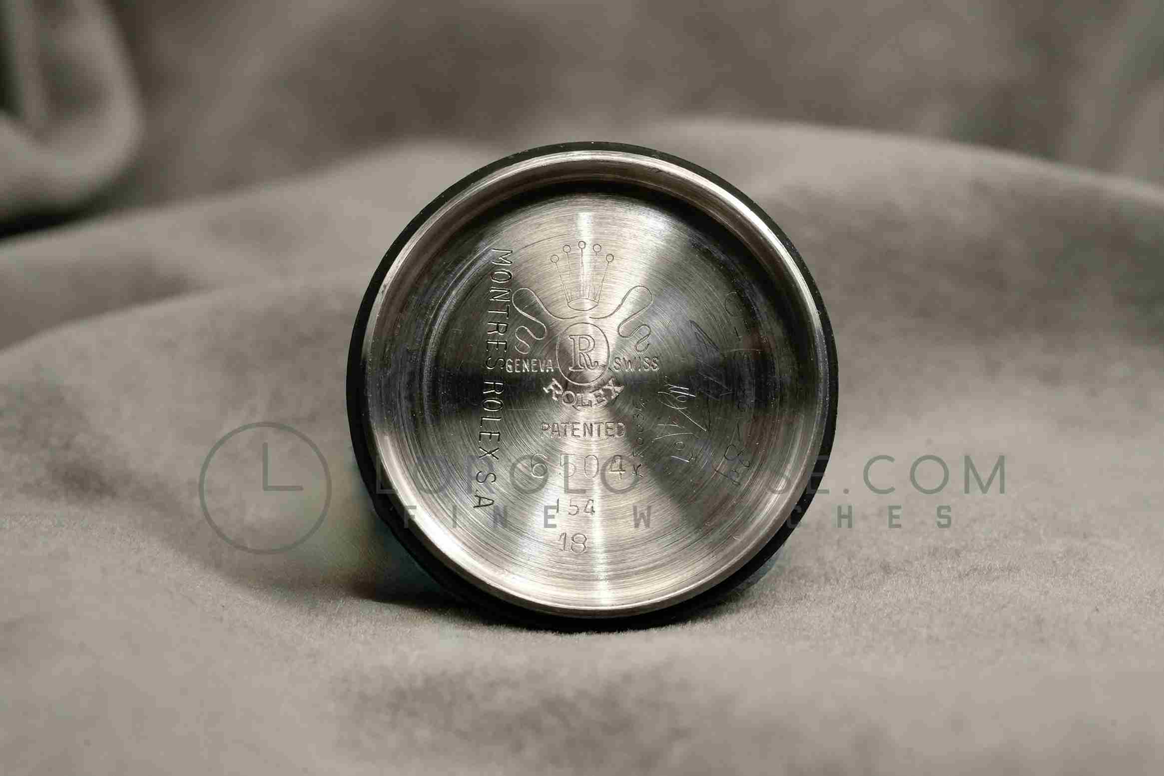 Introduced in the early 1950s, the Rolex Oyster Perpetual ref. 6504 belongs to the brand’s first generation of self-winding waterproof ladies’ watches, pairing the screw-down Oyster case with the “Perpetual” rotor system. This 1954 lady`s steel watch is in a very good conditin and it has just been serviced The stainless-steel case measures 25 mm excluding the original Oyster crown. It is in a very good condition with light, normal traces of use. The screw-down caseback tightens securely and is correctly stamped with manufacturer hallmarks and an internal date code “1.54.” to indicate a production on the first quater of 1954. The case serial number, in the 984XXX range, also indicates this production period The Plexiglass crystal is in perfect condition.
