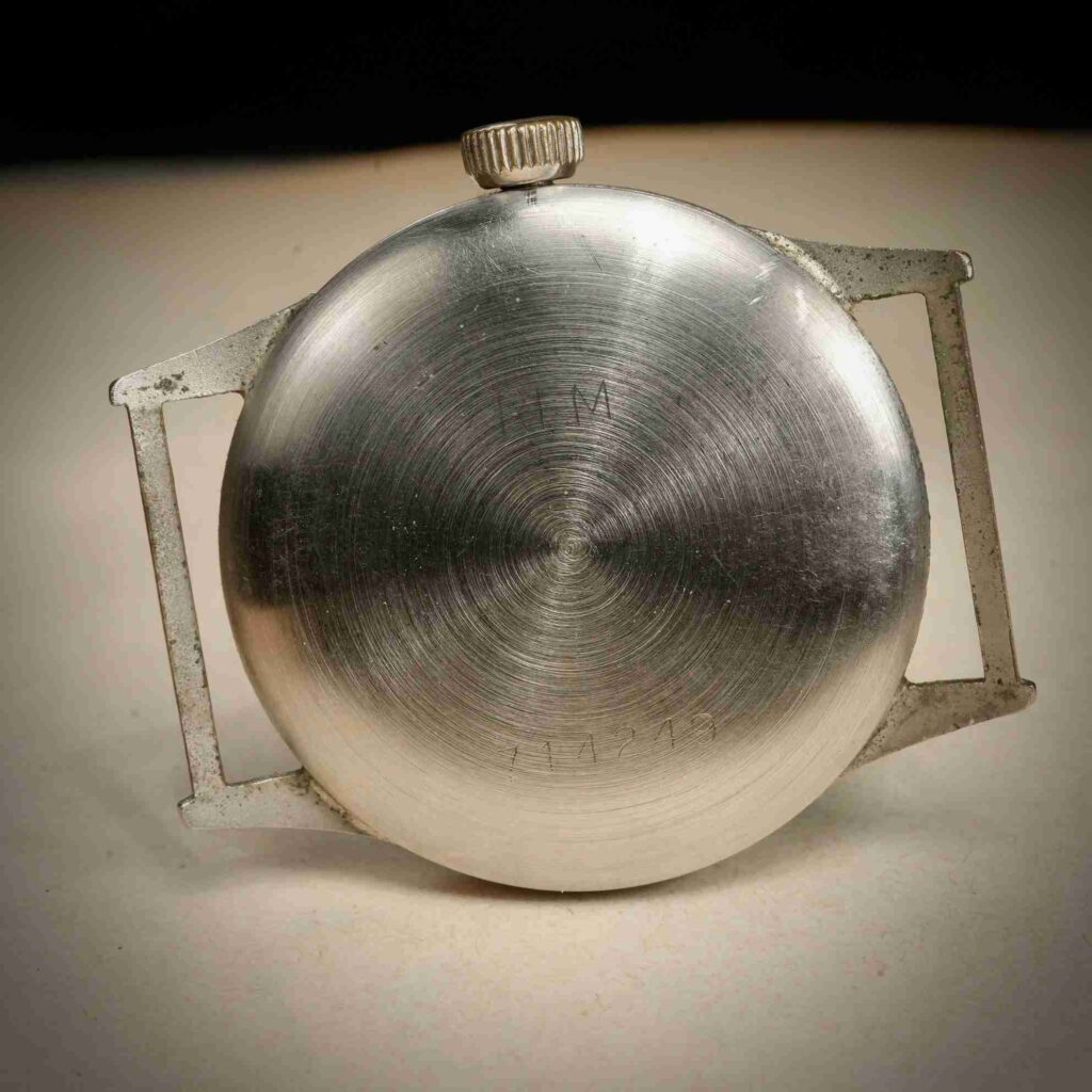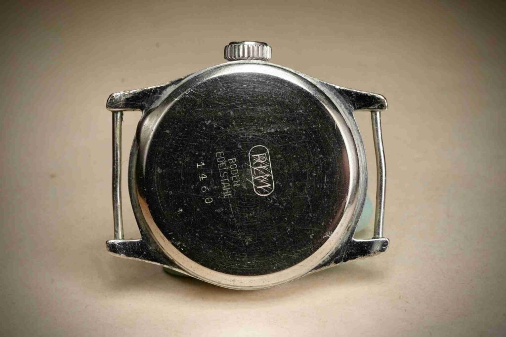 Issued watches from makers such as Wempe, Aeschbach, Stowa, Aristo, Wagner, and Arctos usually bore only the manufacturer’s name (sometimes none) on the dial, with nickel or chrome plated cases with a pressure-locked steel back and, usually, an inner soft-metal movement cover.