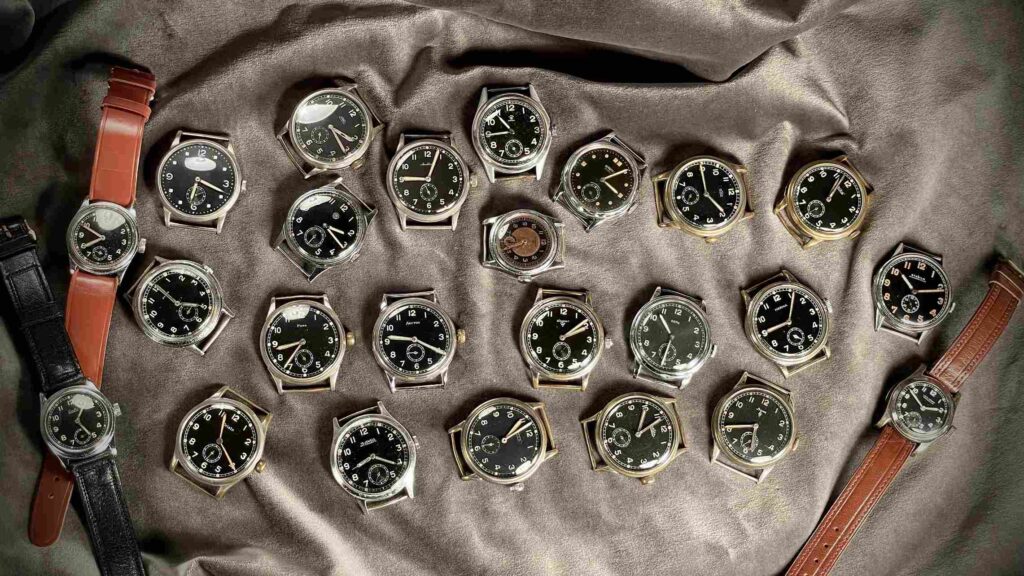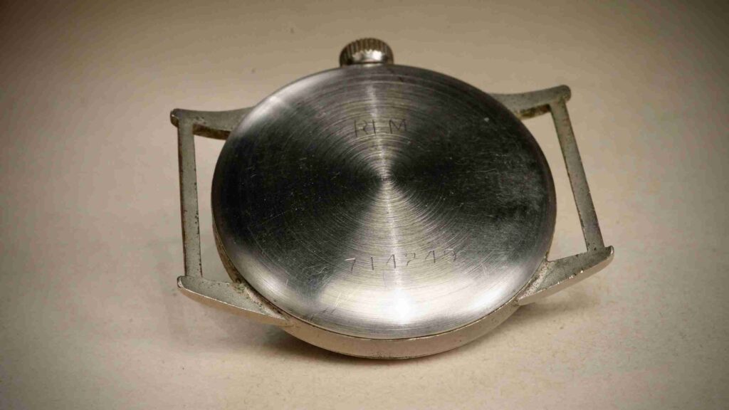 A key detail often overlooked by collectors is that the majority of genuine RLM-era military wristwatches were not factory-marked with “RLM”. While the large navigator’s Beobachtungsuhren (B-Uhr) models carried the engraved specification FL 23883 for navigation instruments, most standard-issue time-only service watches—those worn by Luftwaffe personnel, paratroopers, and ground crew—were unmarked.